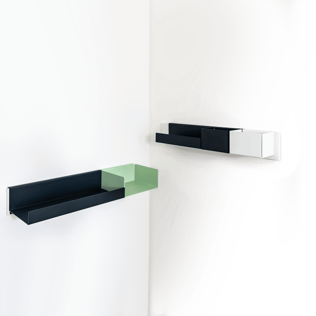 Unsere Regalelemente sind aus 2mm dicken Stahlblechen hergestellt. Die Verwendung von Stahl ermöglicht einen effizienten Herstellungsprozess, bei dem die Teile gelasert und anschließend zur gewünschten 3D-Form gekantet werden. Diese Herstellungsweise ist für unsere Elemente formgebend und erzeugt eine Ästhetik, die durch den den Herstellungsprozess bedingt ist. Abschließend werden die Stahlelemente mit einer Pulverbeschichtung versehen. Diese ist widerstandsfähiger und langlebiger und verleiht eine angenehme Haptik und vornehmes Matt.